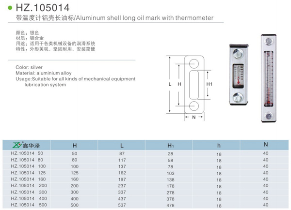帶溫度計鋁殼長油標HZ.105014